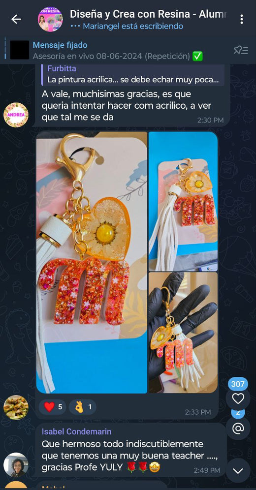 Con un estilo cercano, empático y motivador, Yuly no solo enseña a crear, sino que inspira a dar el paso hacia un negocio propio, ayudando a sus estudiantes a desarrollar confianza, criterio creativo y visión de crecimiento en el competitivo mercado del diseño con resina.