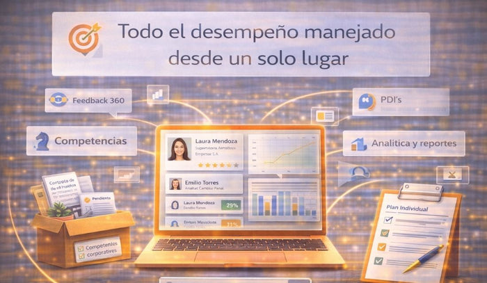Centraliza evaluaciones, competencias, metas y planes de desarrollo en un solo ecosistema conectado a la gestión de personas.
